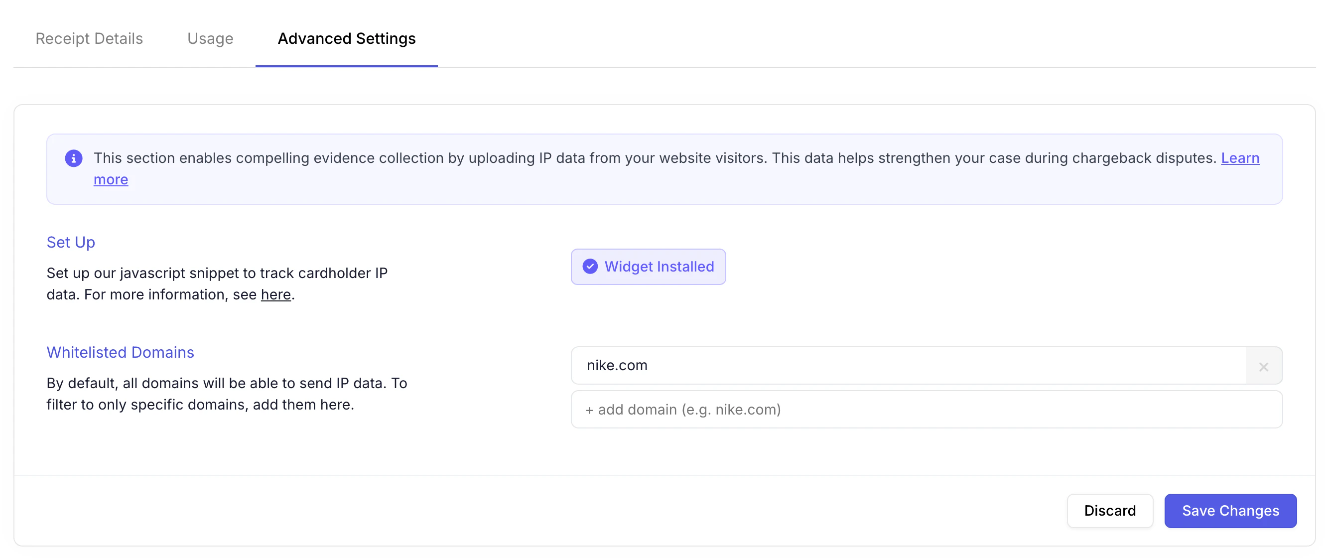 Once your code is live, you will see the widget is installed successfully. You can verify the installation under the digital receipts tab